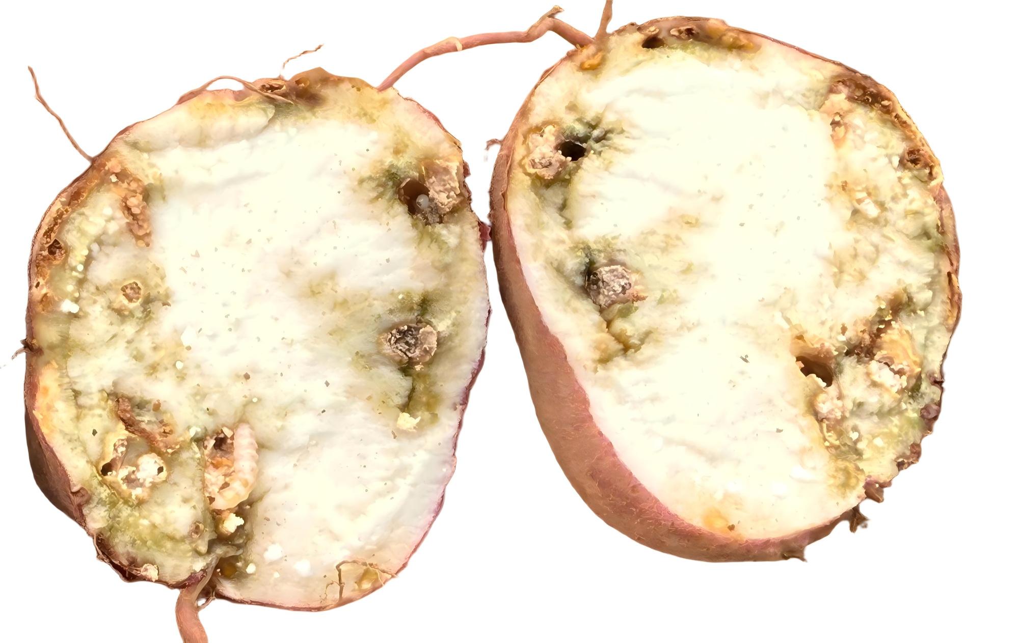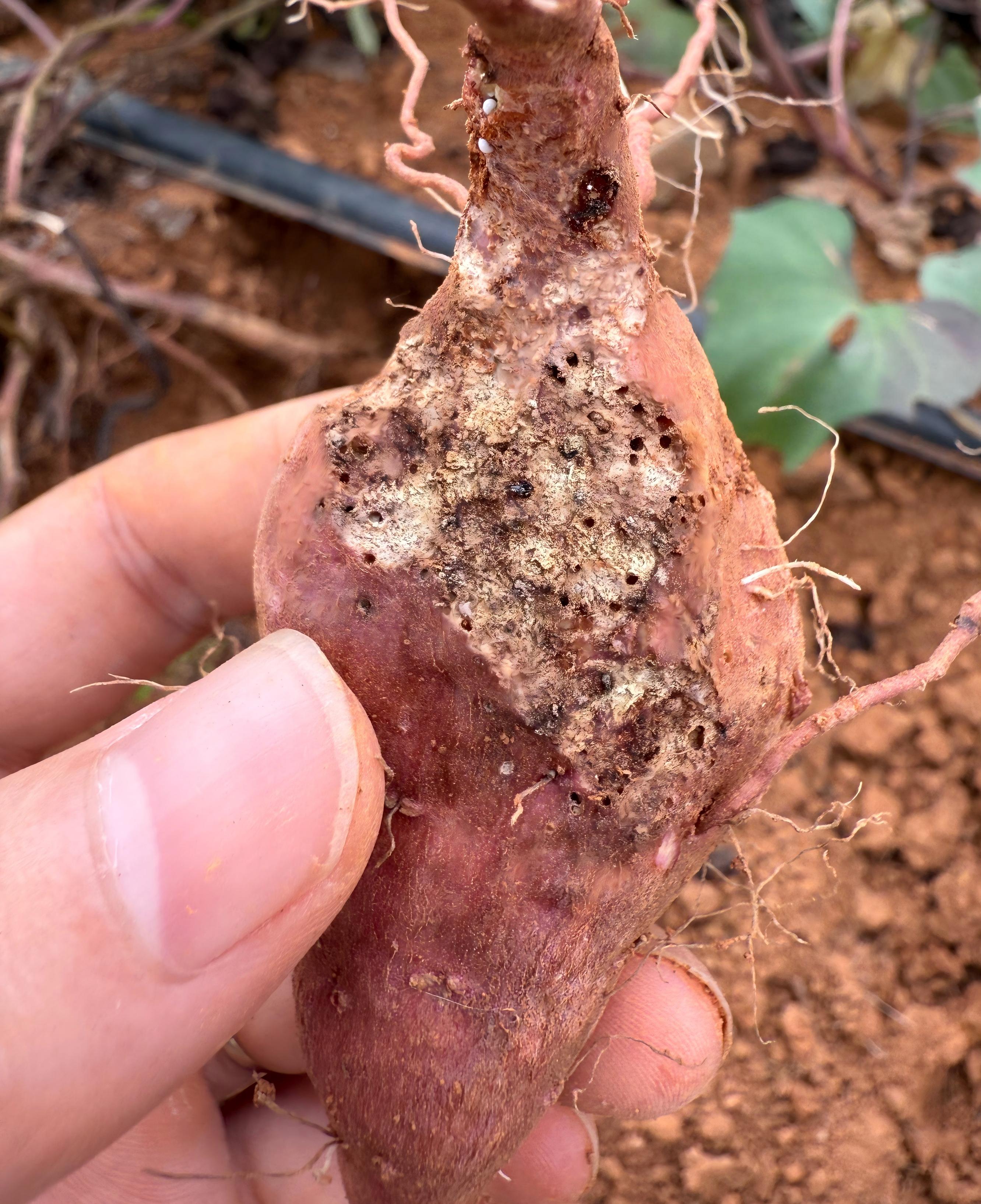 甘薯小象甲的成中和幼中均能危害甘薯,而以幼虫取食菜藤和薯块为主,轻则损失20%-30%,重则达60%以上其至绝收。
